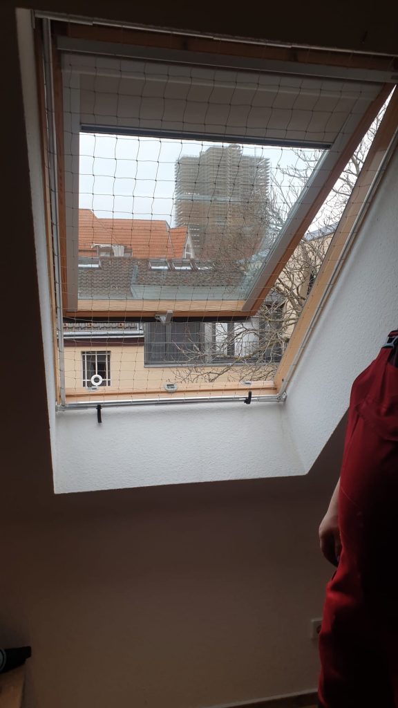 Ich baue einen passgenauen Rahmen, der von innen dank der Federn Plug-and-Play ein- und ausbaubar wird. Das Netz kann über einen Schieber hoch und runter geschoben werden.